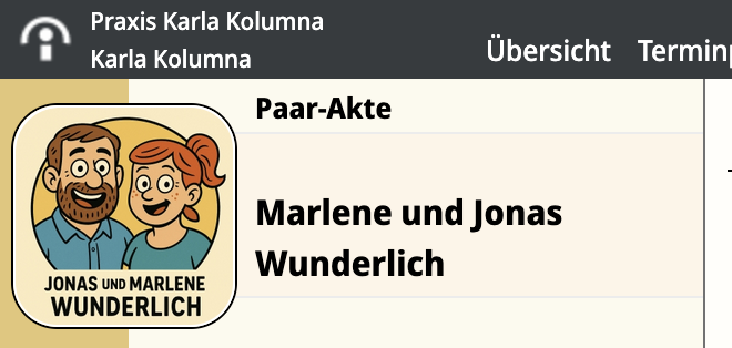 Paartermine gehören zur Paar-Akte, also dokumentierst du auch in der Paar-Akte, nicht in den Einzelakten. Für Paarberatung brauchst du in der Regel keine klassische medizinische Dokumentation.