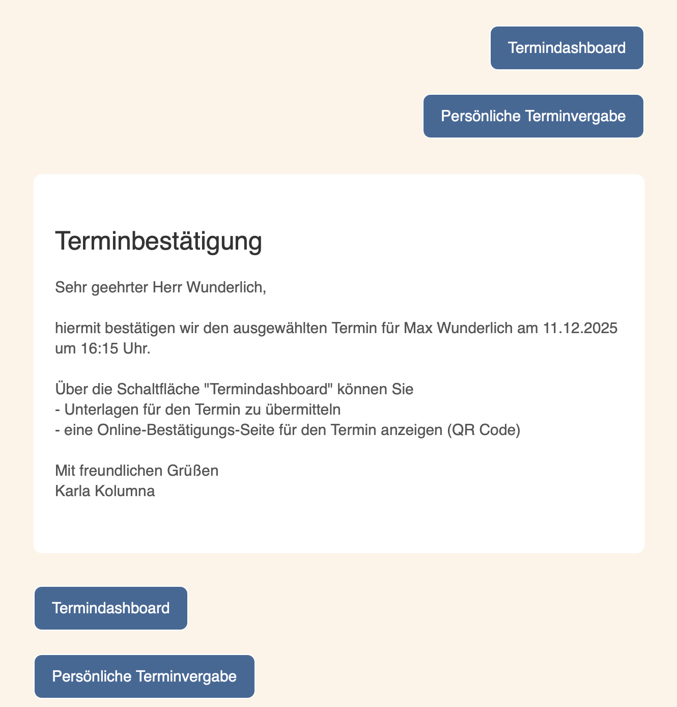 - Marlene bekommt eine Mail ohne diese Links, denn sie hat keinen Terminzugriff.