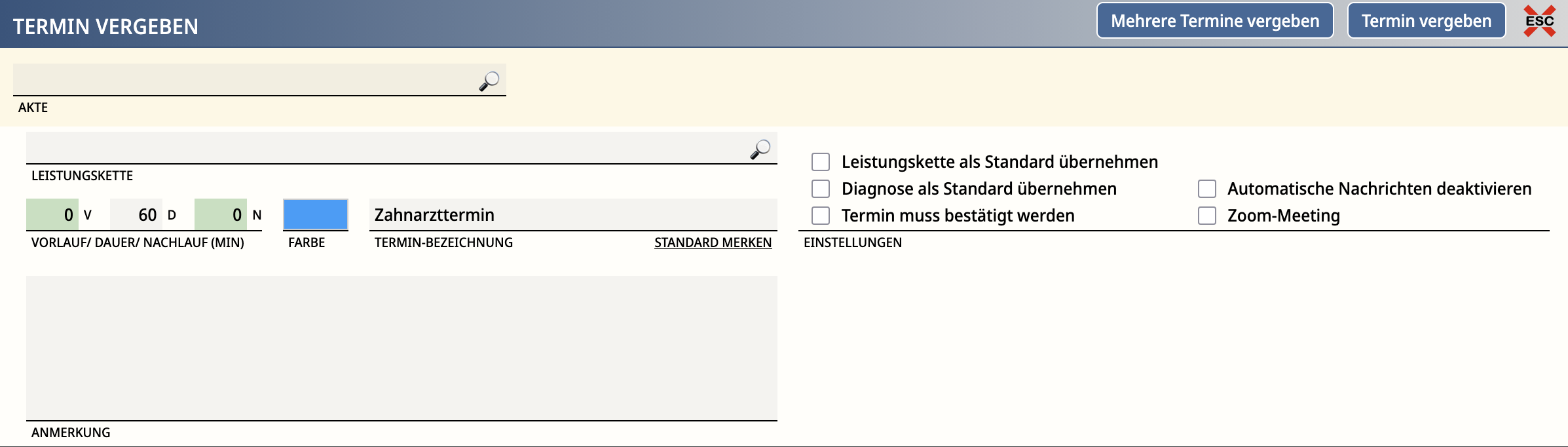 Termin ohne Akte anlegen